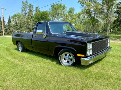 350cu in GMC Crate Motor with Mild Cam, Full Dual Exhaust with Headers, Bell Tech Lowering Kit (4” & 6”), 700R Auto Trans with Overdrive, B & M Shifter, Dakota Digital Dash & Gauges, Chrome & Grey Crager Rims with BF Goodrich Tires, Box Liner Sprayed with New Low Pro Box Cover, Cowl Hood, Posi Diff, Truck cover included *Located off-site - contact 780-674-0125 for viewing or inquiries