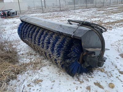 6ft Sky-Hi Skid Steer Sweeper, Manual Pivot ** See Description Brush in good condtion, serial number 110804026, ** Sweeper rotates and functions - may require shaft realignment and or straightening